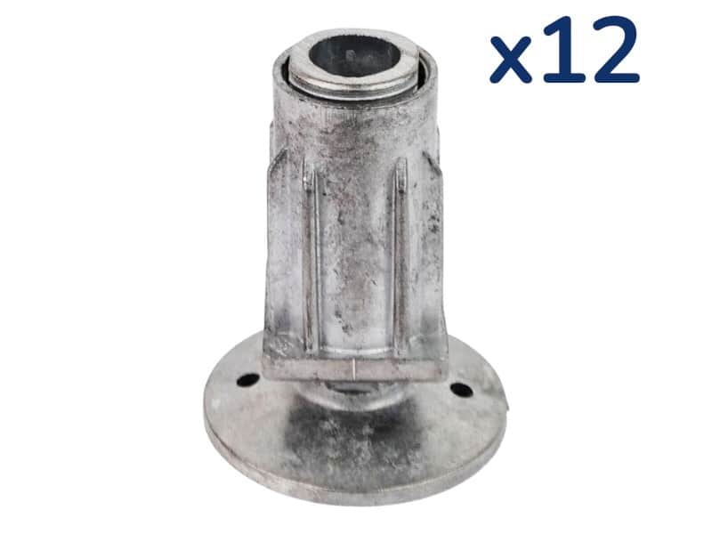 These metal alloy inserts are fitted on most stainless steel tables and sinks which have standard 30mm square tube legs.The lower foot part can be adjusted from 0 to 60mm high and has a 50mm diameter foot with holes drilled in for floor fixing for measurements please see photos