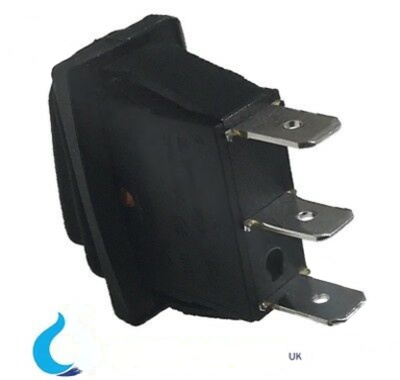AMBER NEON ROCKER ON / OFF SWITCH C/W BELLOW SEAL 30X11MM 3 PIN TERMINAL 230V?