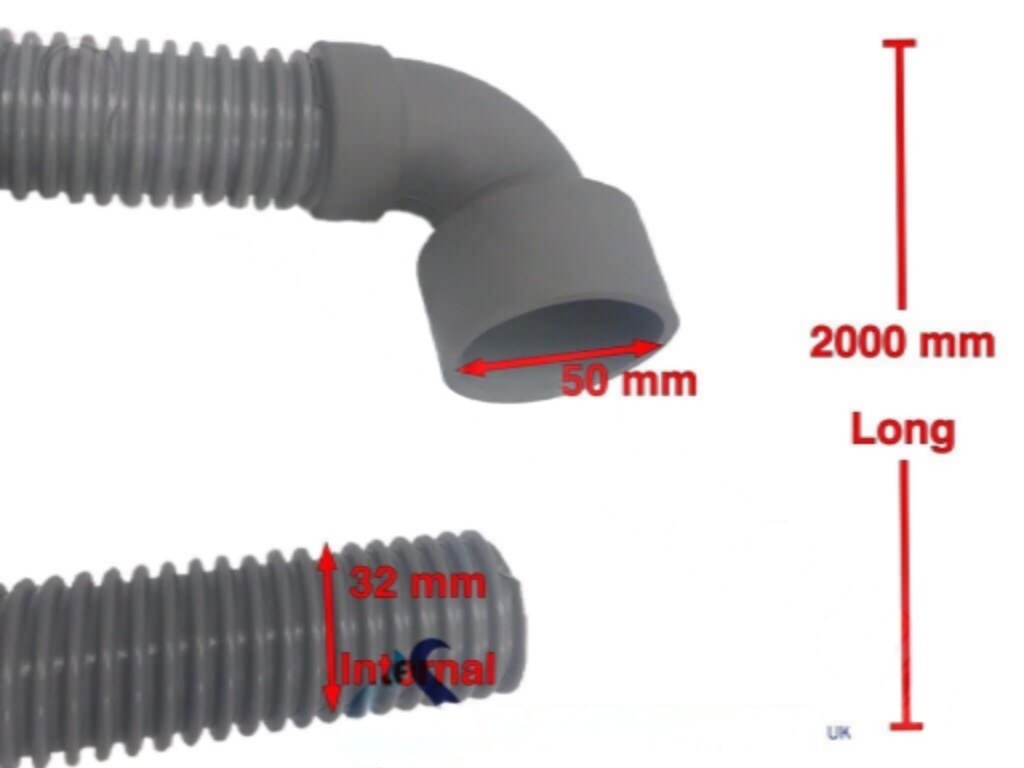 UNIVERSAL 2M LONG ANGLE ELBOW DISH / GLASSWASHER DRAIN OUTLET HOSE FLEXIBLE?